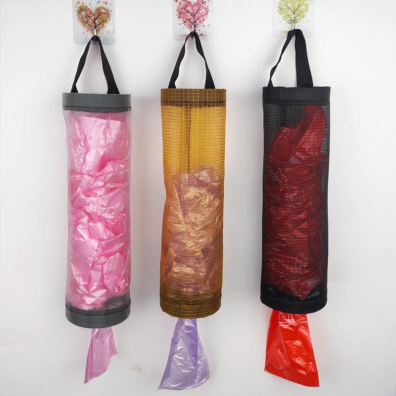 Durable wall-mounted plastic bag dispenser for organizing grocery, trash, and kitchen bags neatly and conveniently.