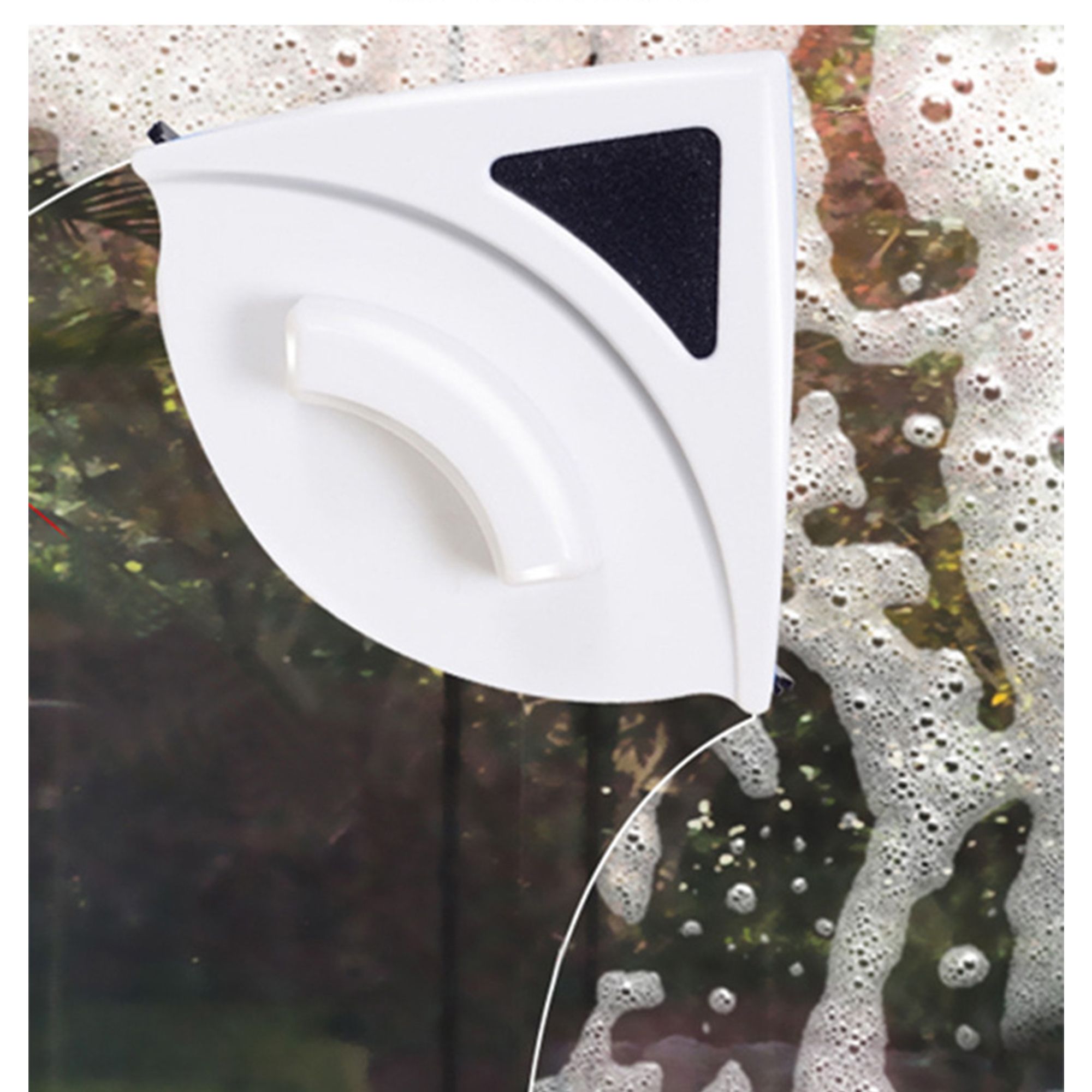 Magnetic double-layer window cleaner designed for 3–8mm glass, featuring automatic water discharge for fast, streak-free cleaning from both sides.